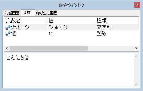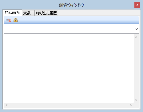 調査ウィンドウには、「対話画面」、「変数」、「呼び出し履歴」の3つのタブがあります。