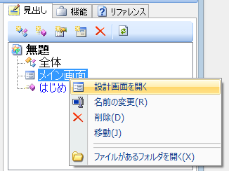 または、再編集したいウィンドウを右クリックして「設計画面を開く」を選びます。